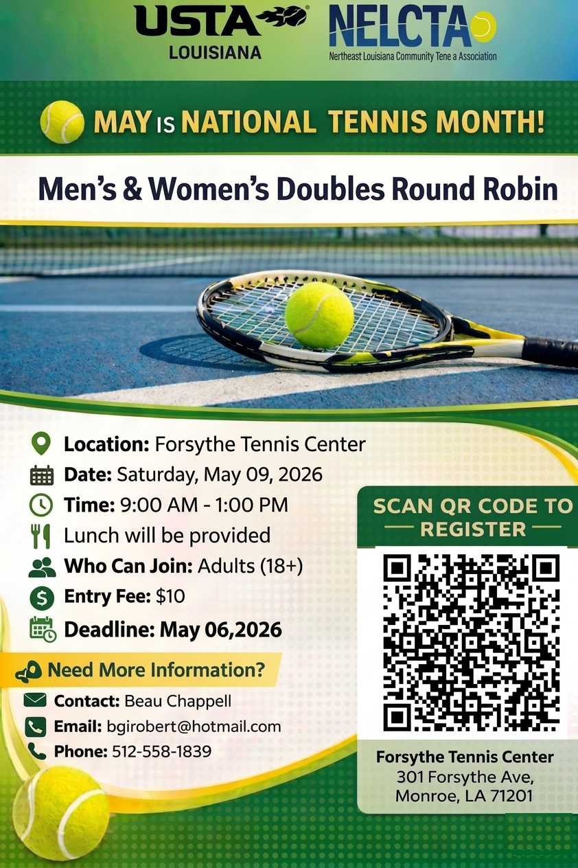 04/20-04/21- LHSAA regional tournaments. Forsythe tennis facility and ULM.